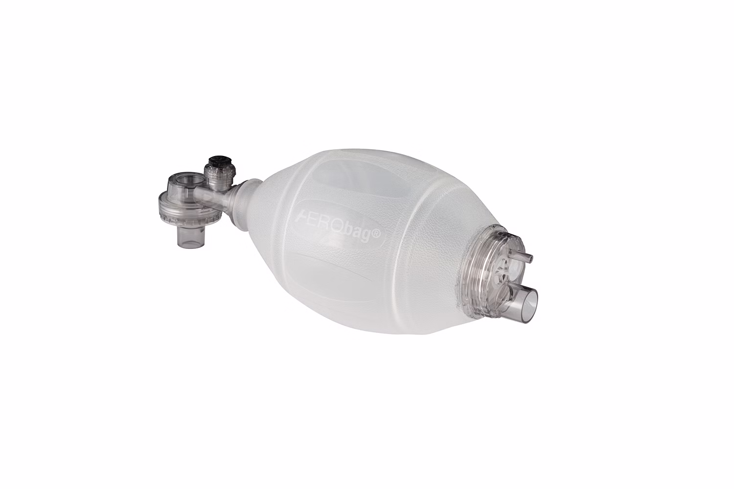Latexfreier manueller Beatmungsbeutel für die Beatmung im Rahmen der pulmonale Reanimation als Set mit bis zu 3 PVC-Beatmungsmasken sowie Reservoirbeutel und 2 m Sauerstoff-Sicherheitsschlauch. Der Beatmungsbeutel verfügt zusätzlich über einen integrierten Anschluss für PEEP-Ventile.