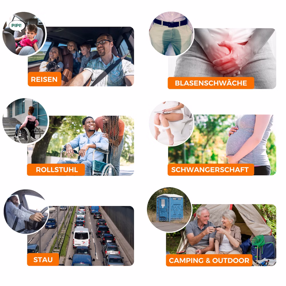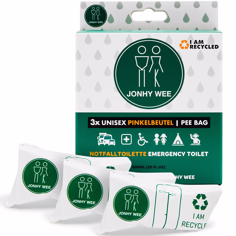 Jonhy Wee ist die ultimative Notfalltoilette 2go für Frauen, Männer und Kinder. Der Pinkelbeutel ist praktisch überall einsetzbar. Er ist leicht, schnell anzuwenden und hygienisch, somit Deine erste Wahl, egal wohin die Reise geht.
