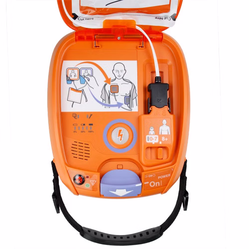 Bei einem Herzstillstand kann ein Defibrillator Leben retten. Er kann, neben der Herz-Lungen-Wiederbelebung, für das Wiedereinsetzen des normalen Herzschlages sorgen.