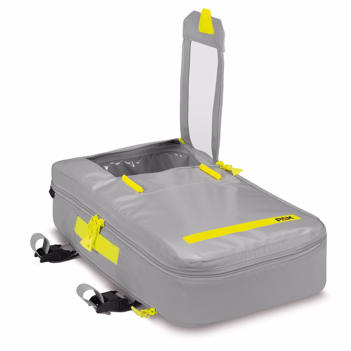 Die stabilisierten Wände des Moduls sorgen auch außerhalb des Rucksacks für eine hohe Standfestigkeit. Die eingeschweißten Metallscheiben im Boden des Klarsichtmoduls ermöglichen eine einfache und sichere magnetische Positionierung in der PAX P5/11 2.0 Serie.