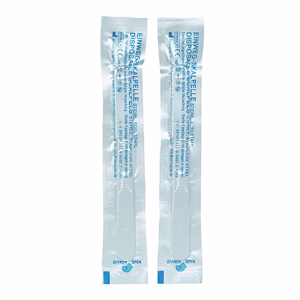 Die Einmalskalpelle sind sicher, einzeln und steril in einem transparenten Peel-Pack verpackt und können so gefahrlos entnommen werden.