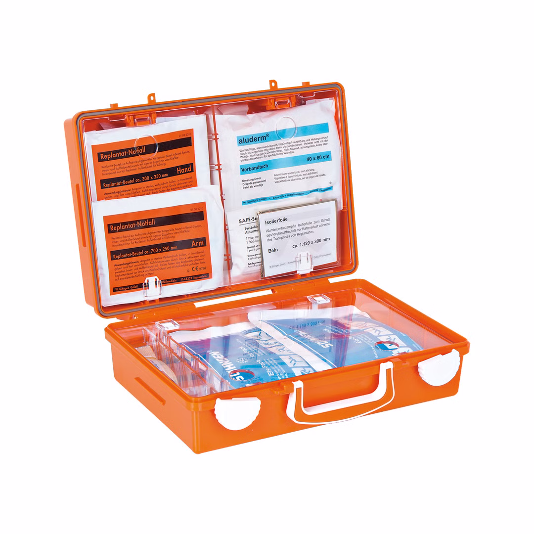 Notfallkoffer bei Amputationen zur Wundversorgung und qualifizierten, sicheren Obhut abgetrennter Körperteile.