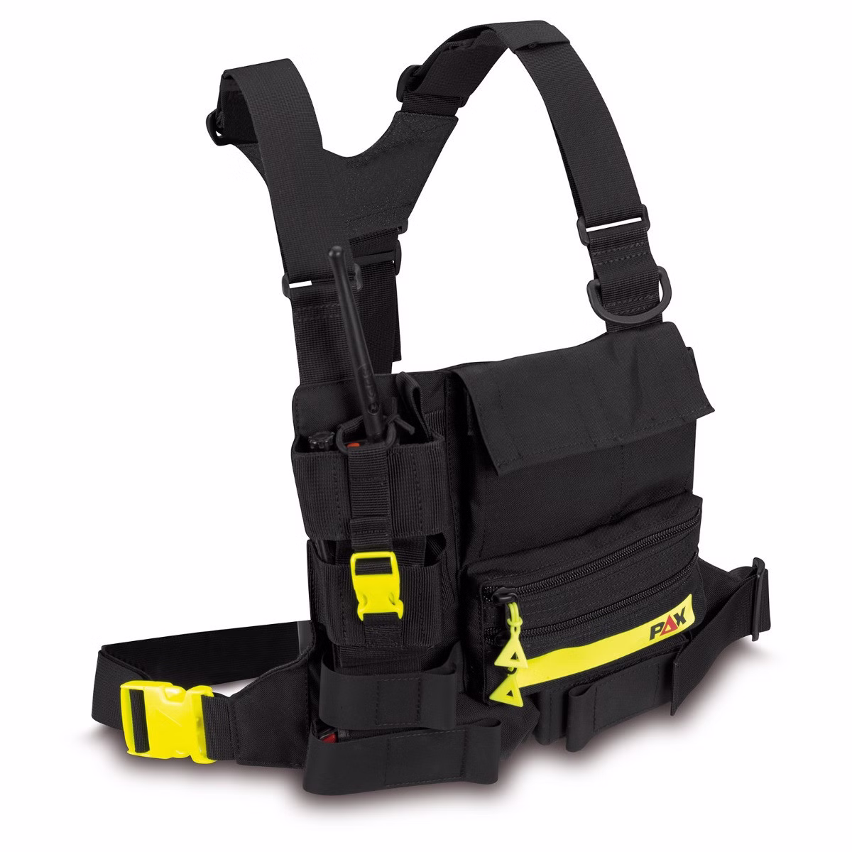 Das PAX Funkgeräteharnisch L ist ein Brustharnisch für die Aufnahme eines Funkgerätes mit variabler Begurtung und Zusatztaschen.