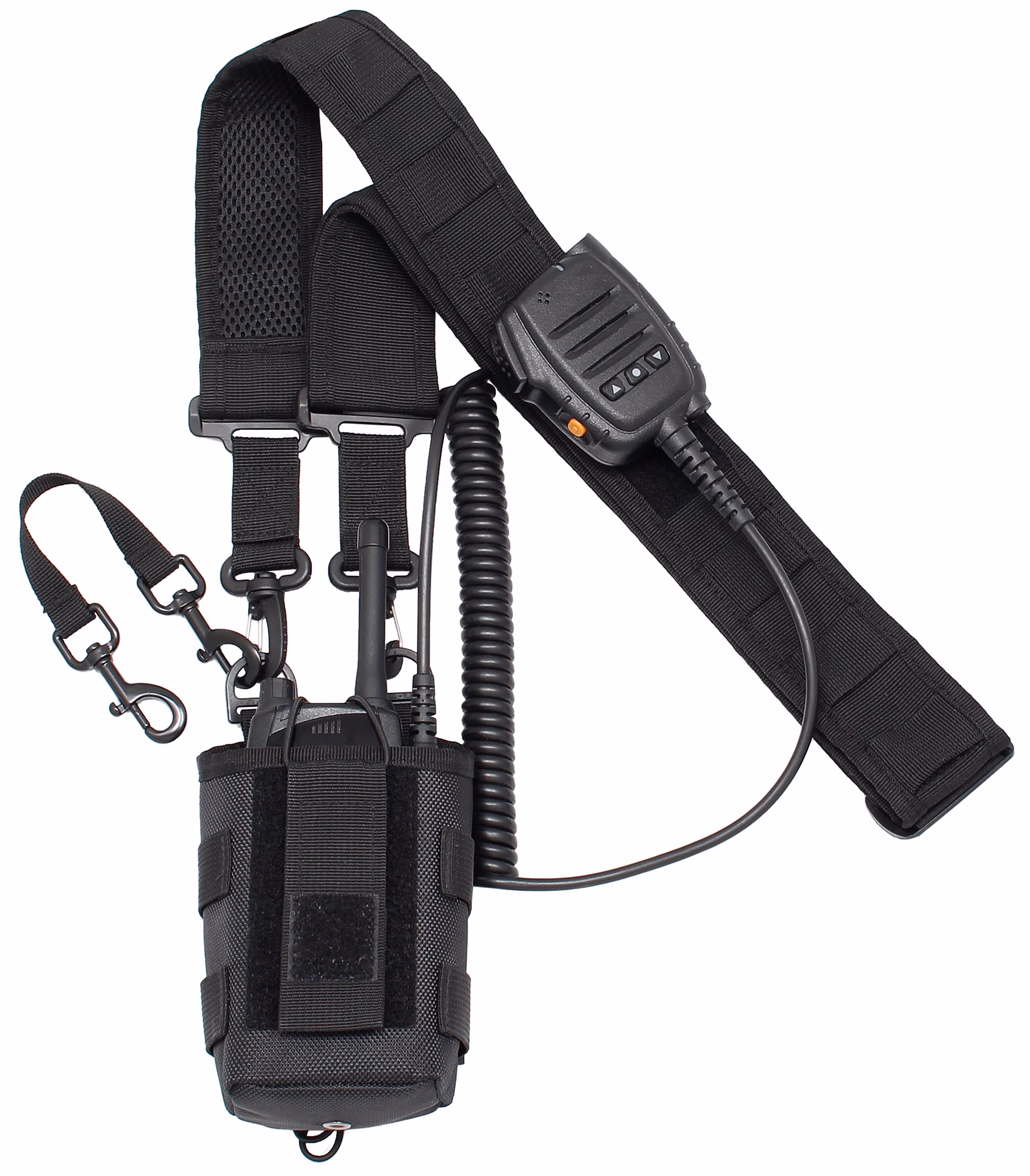 Das Mikrophon des Funkgeräts oder andere Zusatzausstattung wie Holster aus der MOLLE-Serie von TEE-UU können an den insgesamt acht Textilschlaufen des Tragegurts oder den jeweils zwei Schlaufen links und rechts am Holster befestigt werden. Außerdem ist der Gurt mit einem Klettflausch für individuelle Kennzeichnungen ausgeführt.