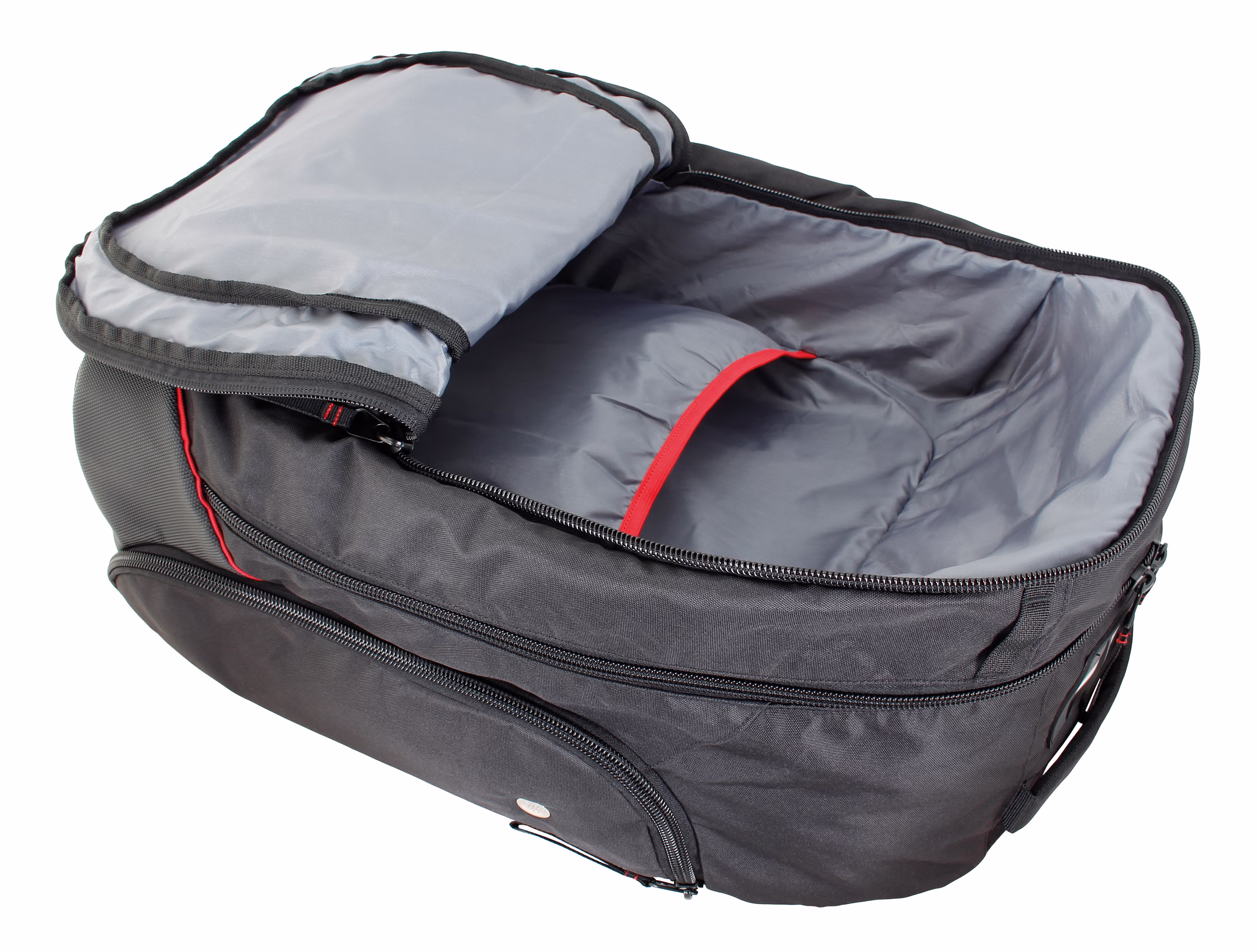 Die beiden, etwa gleich großen Hauptfächer mit je ca. 13 Liter Volumen eignen sich z.B. für die voneinander getrennte Aufbewahrung von verschmutzter und frischer Bekleidung.