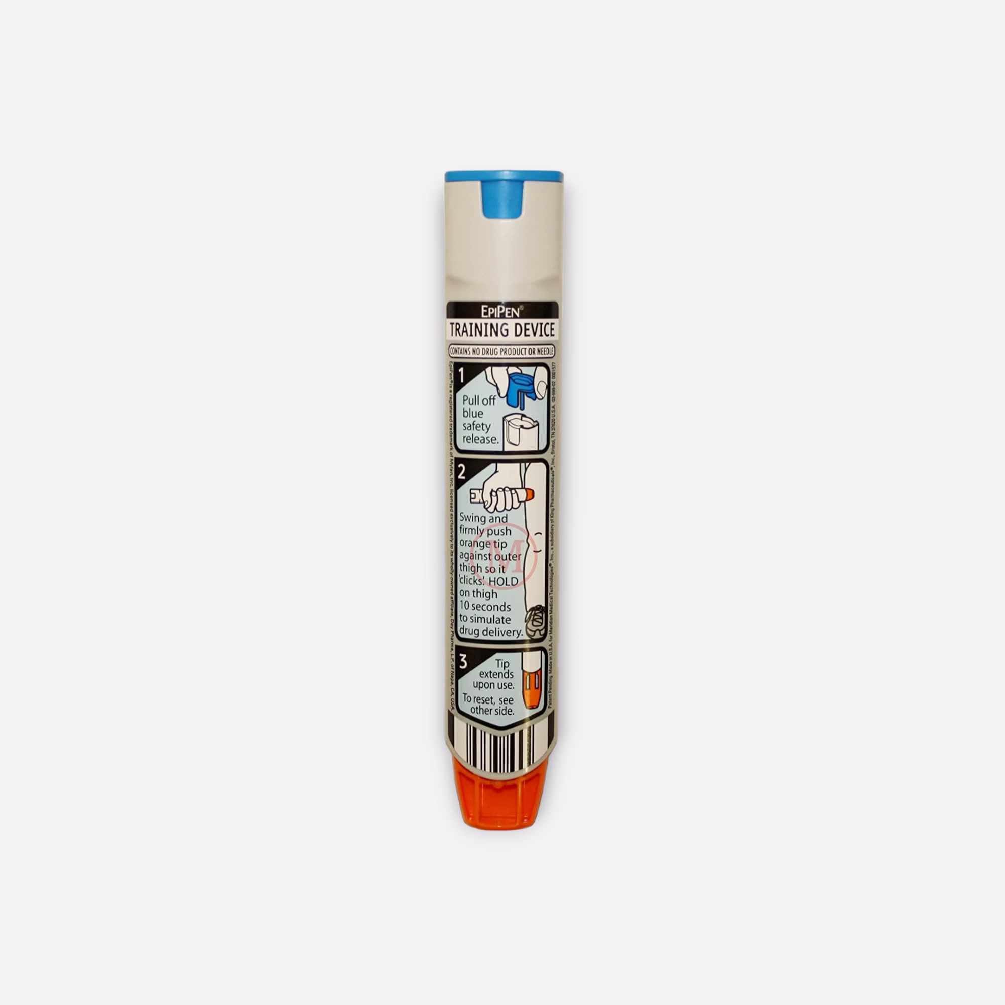 Der EpiPen Trainer ist ein EpiPen ohne Nadel und Medikament. Der Pen wird genutzt um den richtigen Umgang zu schulen und mit dem Umgang vertraut zu machen.